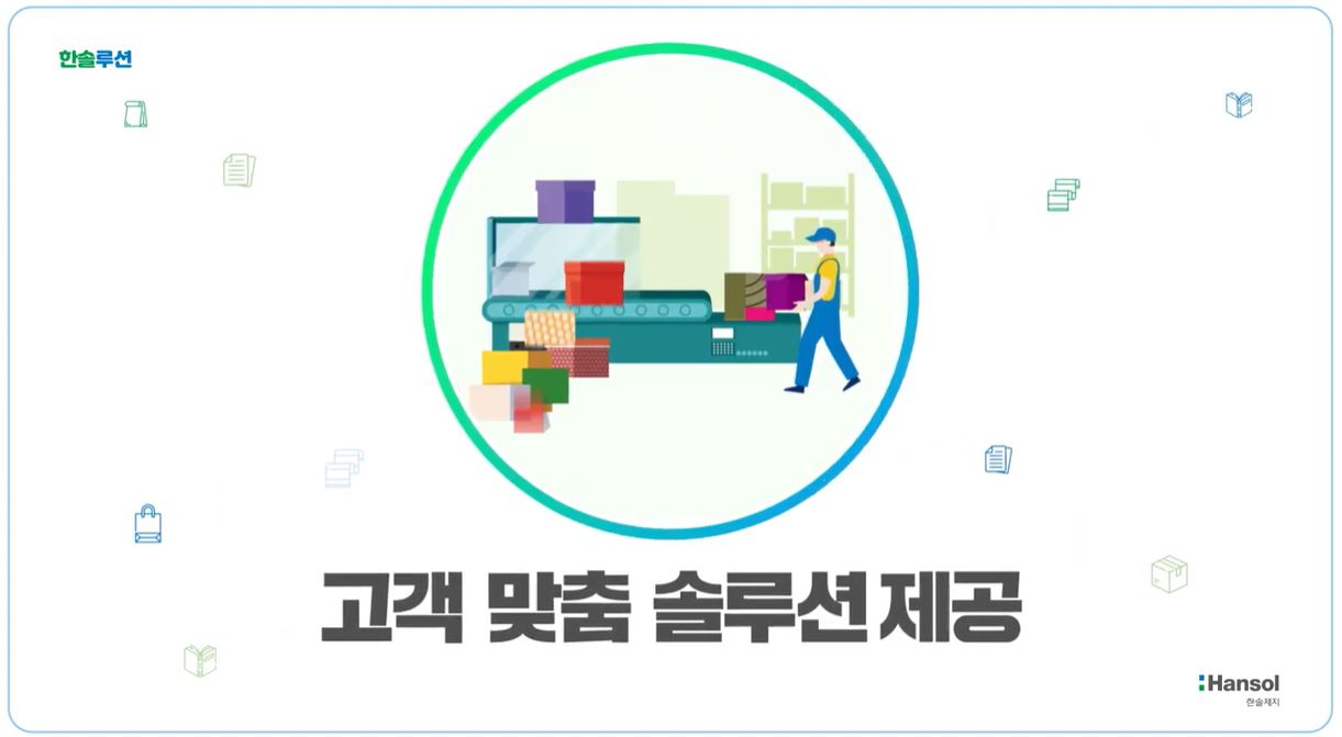 이러한 기업들의 고민을 해결해 주기 위해 한솔제지에서는 원스톱 친환경 패키징 제공 시스템인 ‘한솔루션(Han-Solution)'을 구축했습니다.