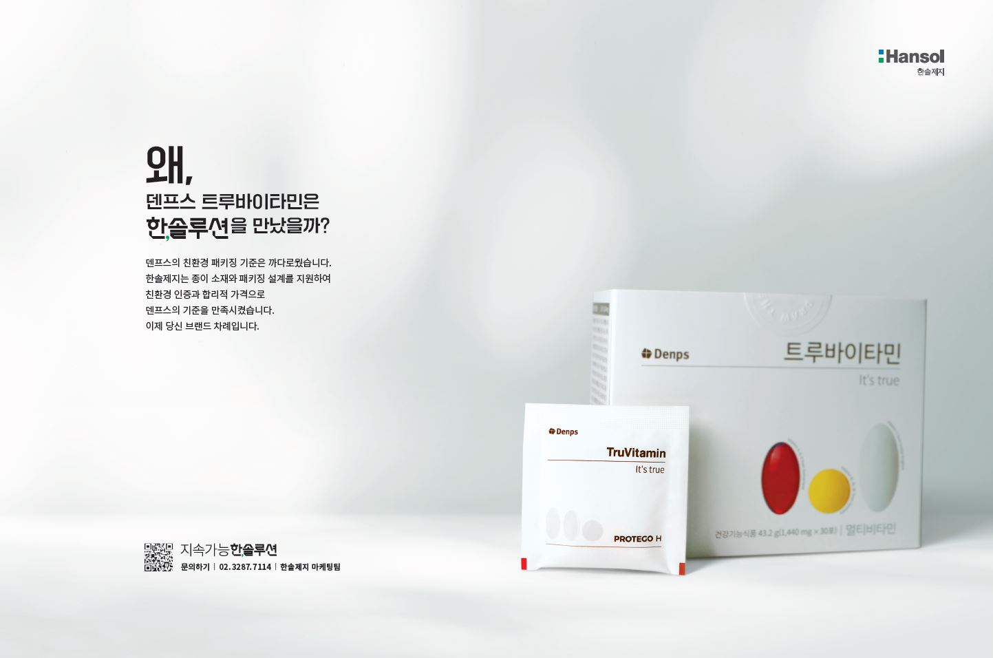 에이치피오(HPO)의 건강기능식품 브랜드 덴프스의 대표 비타민 제품군인 '트루바이타민'의 친환경 패키징 기준은 무척 까다로웠습니다. 한솔제지는 ‘프로테고(Protego)’와 ‘Hi-Q AB프리미엄’ 등의 종이 소재와 패키징 설계를 지원하여 친환경 인증과 합리적 가격으로 덴프스의 기준을 만족시켰습니다.