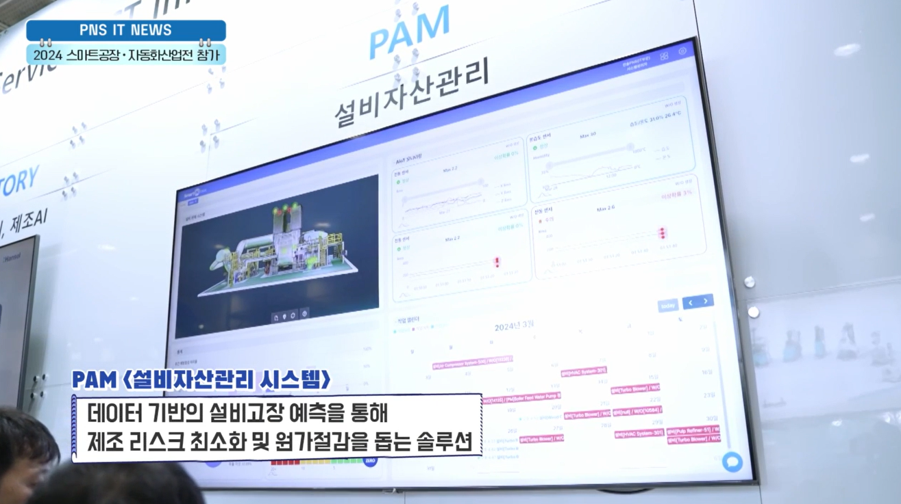 이번 전시에서 한솔PNS는 제조 현장과 IT 운영에 디지털 혁신을 이끌 토탈 DX 솔루션을 선보였는데요, 특히 환경안전보건관리 솔루션 'ESH'와 설비자산관리솔루션 'PAM'은 기업의 지속 가능 성장을 위한 핵심 기술로 주목받았습니다.