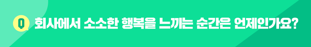 회사에서 혼자 할 수 있는 일은 아무것도 없습니다. 다른 부서, 다른 사람들과 협업이 반드시 필요하죠. 그래서 평소 다른 부서에서 요청하시는 일이 있으면 제 나름의 최선을 다해 도와드리고자 노력하는데요. 시간이 지나고 반대로 제가 요청드릴 일이 생겼을 때 흔쾌히 도와주시는 분들을 보면 ‘그동안 내가 해온 일들이 헛되지 않았구나’라는 생각이 들면서 따뜻함, 뿌듯함, 소소한 행복을 느낍니다.