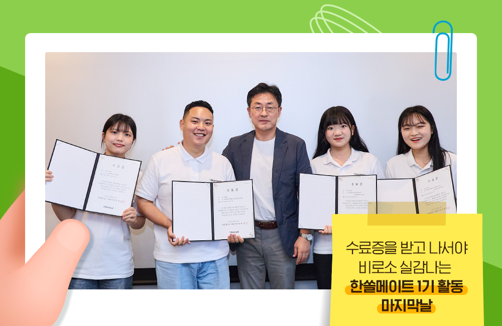 지난 4월 한솔그룹 최초 서포터즈 1기로 선발되어 모든 미션과 활동을 완수하고 전원이 수료증을 받으며 활동을 종료하게 된 한쏠메이트가 주인공인데요.