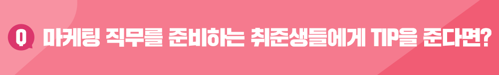 저는 대학을 다닐 때부터 꾸준히 마케팅 분야를 꿈꾸고 준비해서 2017년 마케팅 직무로 사회생활을 시작했어요.
