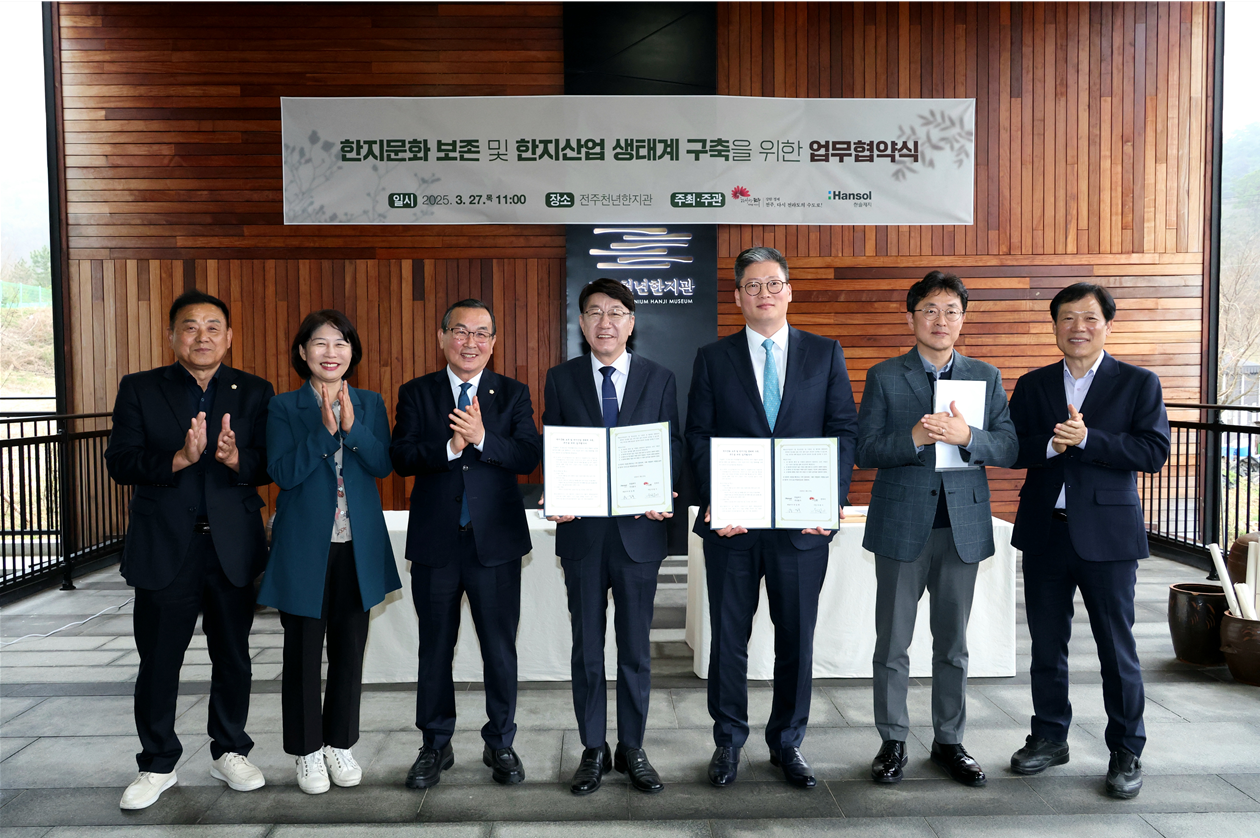 한지의 가치를 지키기 위해 한솔그룹과 전주시가 '한지문화 보존 및 한지산업 생태계 구축을 위한 업무협약'을 체결했습니다.