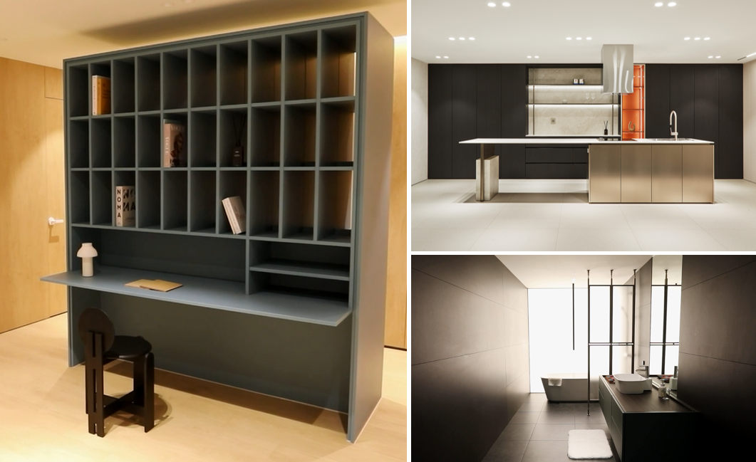 '한솔룸(Hansol Room)'으로 들어서는 순간, 마치 하나의 세련된 주거 공간에 들어선 듯한 느낌을 받게 됩니다. 이곳은 한솔홈데코가 제안하는 감각적인 인테리어 제안이 본격적으로 펼쳐지는 공간으로, 서재, 주방, 욕실 등 세 가지 콘셉트로 실제 생활공간을 연출한 전시 공간입니다.