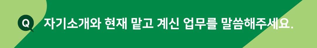 A. 저희 파트는 각자 2~3개의 한솔그룹 계열사를 담당하고 있기 때문에 하루가 정말 빠르게 지나갈 만큼 바쁜 일상을 보내고 있답니다.