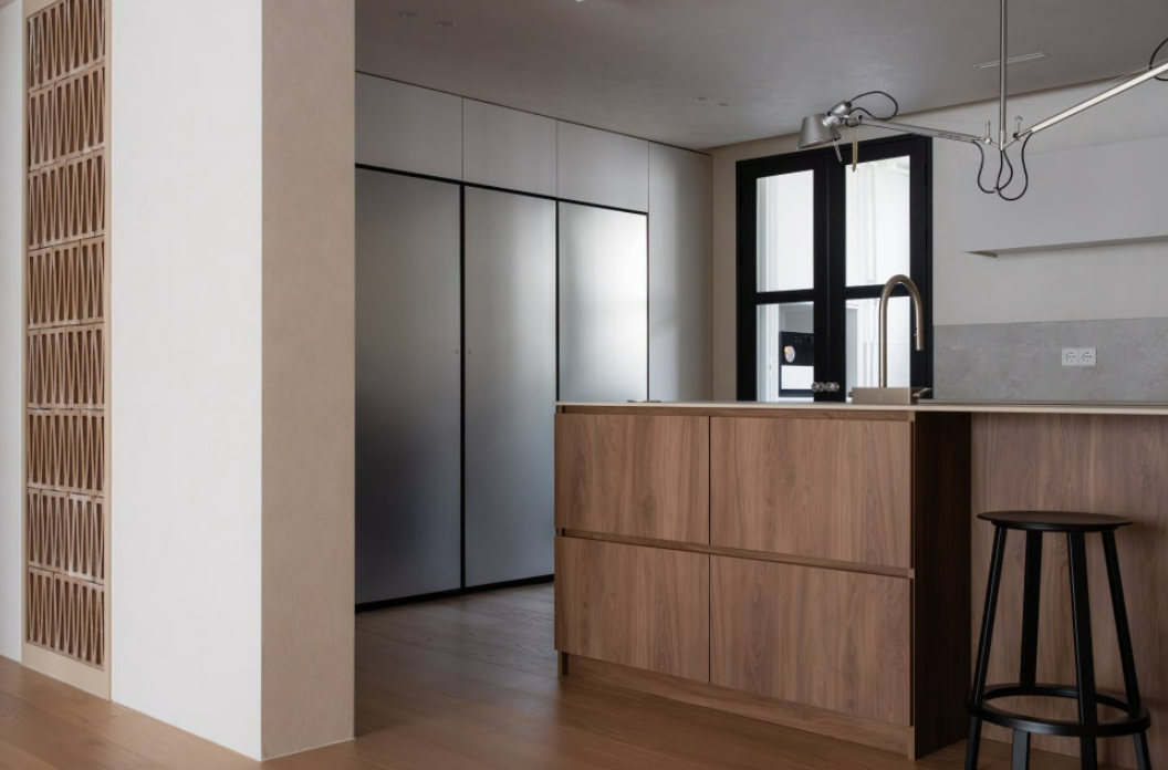 우드 특유의 따뜻한 결이 포그그레이와 만나면, 따뜻함과 모던함이 동시에 살아나는 의외의 조합을 경험할 수 있습니다.