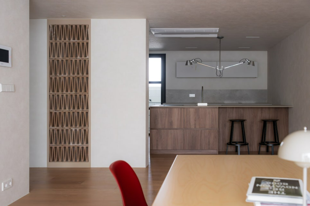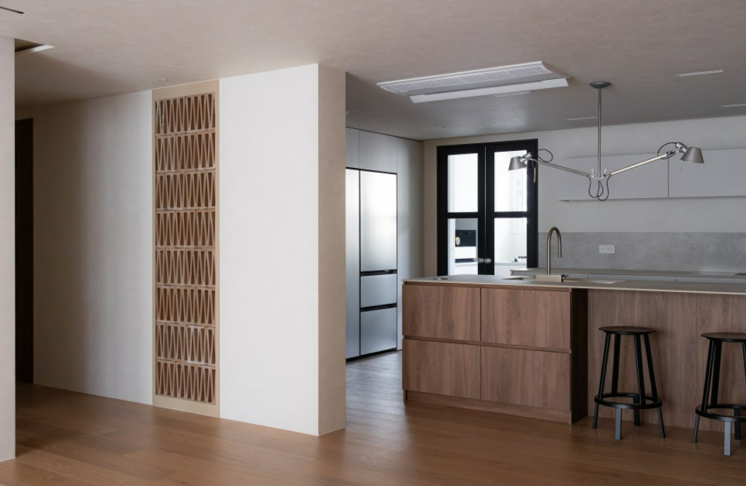 이번 사례에서 주방 가구와 마루에 적용된 베르겐오크 패턴이 그 좋은 예인데요.