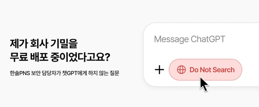 A. 한솔PNS는 챗GPT 보안 가이드와 함께, 문서와 데이터 유출을 막는 강력한 보안 솔루션을 병행하고 있습니다.
