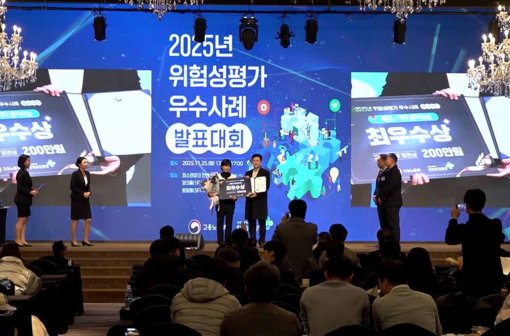 이어, 한솔로지스틱스는 지난 11월 25일 진행된 '2025년 위험성평가 우수사례 발표대회'에서 '최우수상'을 수상했습니다. '위험성평가 우수사례 발표대회'는 중대재해를 효과적으로 예방한 다양한 사례를 발굴·확산함으로써 국내 사업장의 위험성평가 현장 안착 및 ‘자기규율 예방체계 구축’을 지원하기 위한 정부 주관의 공신력 있는 시상입니다.
