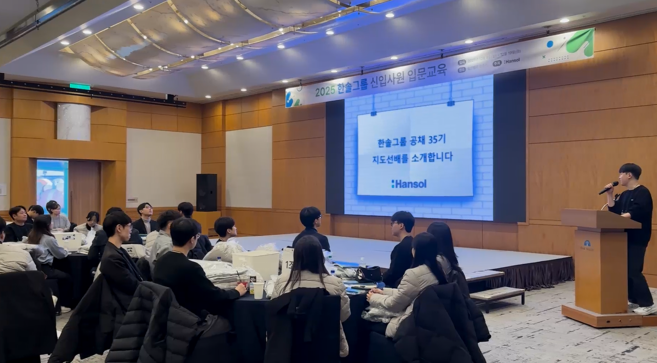 한솔그룹의 새로운 미래를 만들어갈 공채 35기 신입사원 입문교육이 12월 8일부터 19일까지, 오크밸리 리조트에서 11박 12일간 진행되었습니다. 이번 입문교육에는 한솔그룹 공채 35기 신입사원 모여 한솔그룹 구성원으로서 갖추어야 할 기본 역량을 쌓고, 소속감과 자부심을 높이는 다양한 프로그램을 경험했는데요. 한솔인으로 성장하기 위한 마음가짐과 방향성을 세우는 의미 있는 시간이었습니다.