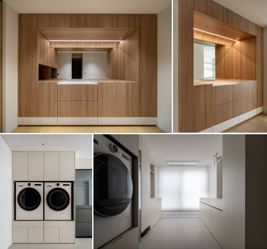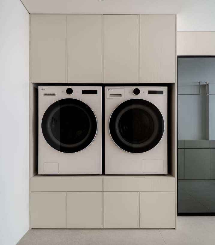 다음으로 살펴볼 공간은 맞춤가구로 구성된 드레스룸입니다. 공간에 딱 맞게 설계된 맞춤가구가 자연스러운 흐름을 만들어주며, 전체적인 완성도를 한층 높여주는데요. 부드러우면서도 차분한 공간감을 선사합니다.