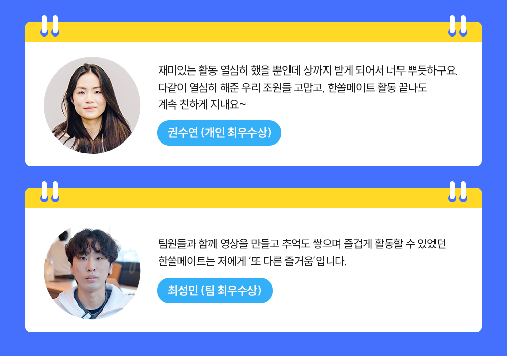 멋지고 단단하게 성장한 한쏠메이트 2기의 대학 생활에