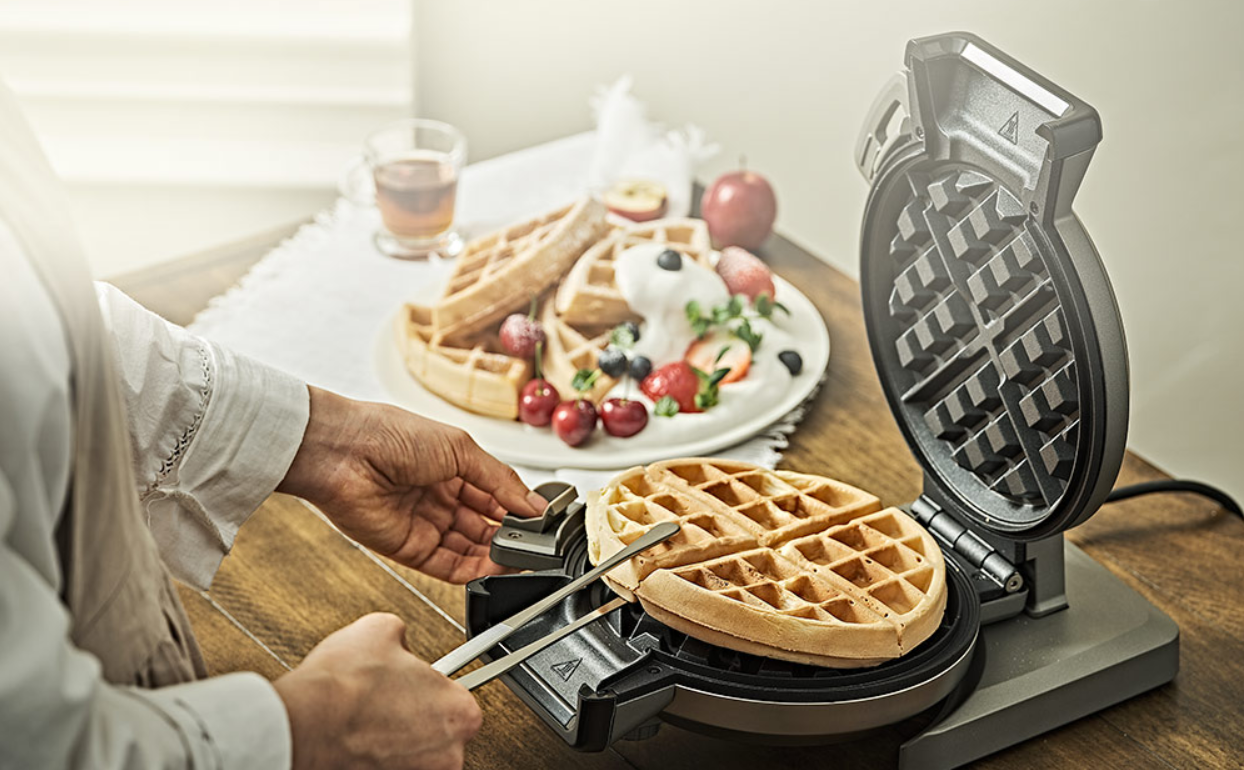 이번에는 반죽으로 조리해 더 두툼하고 먹음직스러운 와플을 만들어주는 와플 기계인 "쿠진아트 버티컬 와플 메이커"를 소개합니다. 이름처럼 기계를 세워 두고 반죽 투입구에 반죽을 부어 기계를 작동시키면 골고루 맛있게 익은 와플을 만들 수 있는데요. 5단계까지 굽기 정도를 조절할 수 있어 취향에 맞게 조리가 가능합니다. 또한, 기계를 세워서 보관할 수 있어 협소한 공간에서 활용도가 좋다고 하네요. 집에서 작게 홈 카페 공간을 꾸미실 계획이라면 공간 활용도가 좋은 버티컬 와플 메이커를 추천합니다.