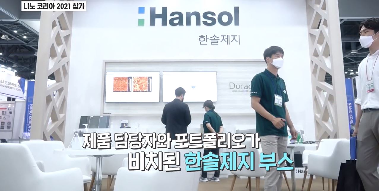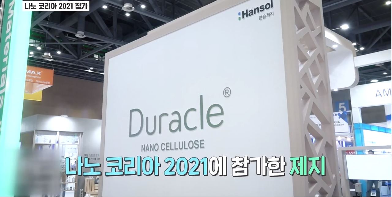 한솔제지의 나노셀룰로오스 브랜드는 내구성의 Durable과 미라클의 합성어인 ‘듀라클’입니다. 제지에서는 제조 기술뿐만이 아니라 이를 이용한 복합소재, 패키징, 화장품, 식품 등에 적용되는 응용기술 개발까지 힘쓰고 있습니다. 이러한 기술력을 관련 기업과 기관들에게 홍보하기 위해 2년 연속으로 나노 코리아 2021에 참가하게 되었습니다.