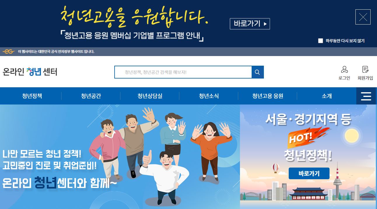 정부나 지자체에서는 청년 취업이나 재테크를 위해 다양한 제도를 운영하고 있습니다. 혜택을 놓치지 않으려면 정보에 민감해야 합니다. 온라인청년센터(https://www.youthcenter.go.kr/)는 고용노동부에서 운영하는, 대한민국 청년이라면 누구나 누릴 수 있는 복지 혜택을 총망라한 사이트입니다.