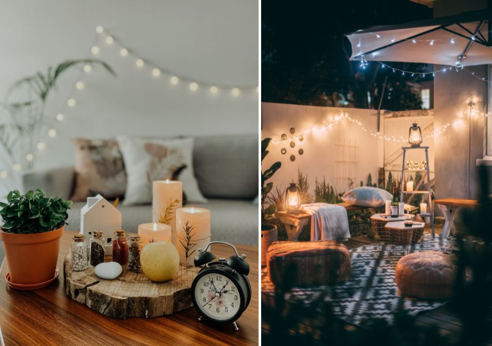 조명을 대신해 캔들을 활용해도 따뜻한 분위기를 연출할 수 있습니다. 1시간 이상 캔들을 켜 두면 실내온도가 1도에서 2도 상승하는 효과도 있다고 하니 분위기 잡고 온도도 올리는 일석이조의 효과를 누릴 수 있습니다.