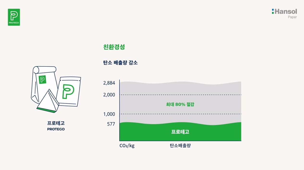 한솔제지는 기존 제지 사업뿐 아니라 소재 및 친환경 분야로 사업 저변을 확장하겠다는 비전을 세우고 기존 플라스틱 용기와 비닐 코팅 등을 대체할 수 있는 종이 식품 용기인 ‘테라바스’, 생분해 코팅제 ‘프로테고’ 등 친환경 제품을 개발 생산하고 있습니다. 최근 플라스틱 사용을 자제하는 분위기 속에 이디아, 유한양행, 마이셰프 등 다양한 소비재 관련 기업들이 한솔제지와 업무협약을 맺고 친환경 패키징 개발에 함께하고 있습니다.