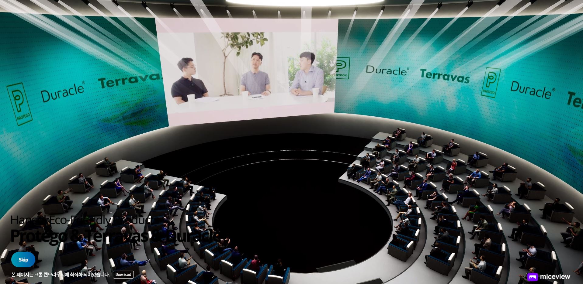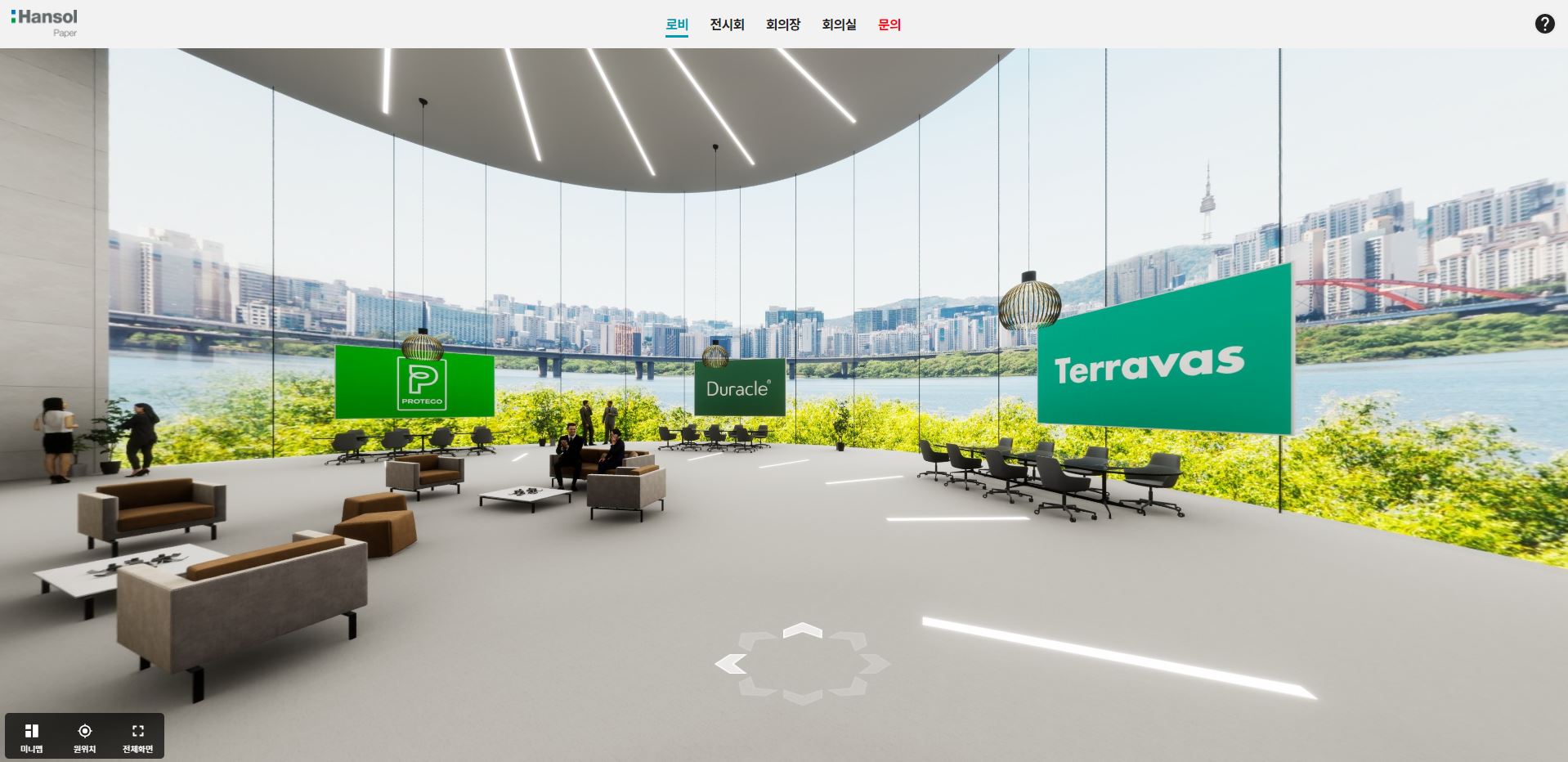 친환경 종이 포장재 ‘프로테고(Protego)’, 자연을 담은 용기 ‘테라바스(Terravas)’, 생분해성 소재 ‘듀라클(Duracle)’과 한솔제지에 대해 현실감 있게 소개합니다. 한솔제지 메타버스 가상전시관은 크게 ‘로비, 전시회, 회의장, 회의실, 문의’의 5가지 메뉴로 구성, 공정과정과 제품의 특징, 포트폴리오 등을 상세하게 확인할 수 있습니다.