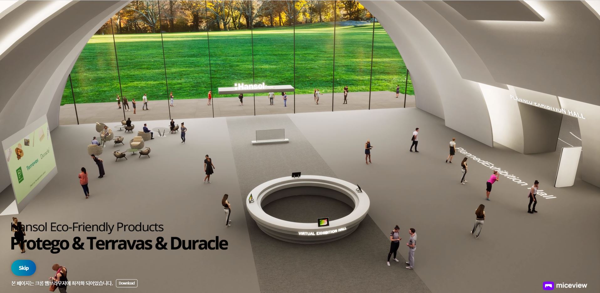 한솔제지는 당사의 친환경 브랜드를 메타버스 공간에서 체험해보는 가상전시관을 운영하고 있습니다. 한솔제지 가상전시관은 코로나19로 인해 오프라인 전시 및 고객 대면 미팅이 어려운 가운데 고객들과 비대면 소통을 강화하고 제품 정보를 제공하고자 기획되었습니다.