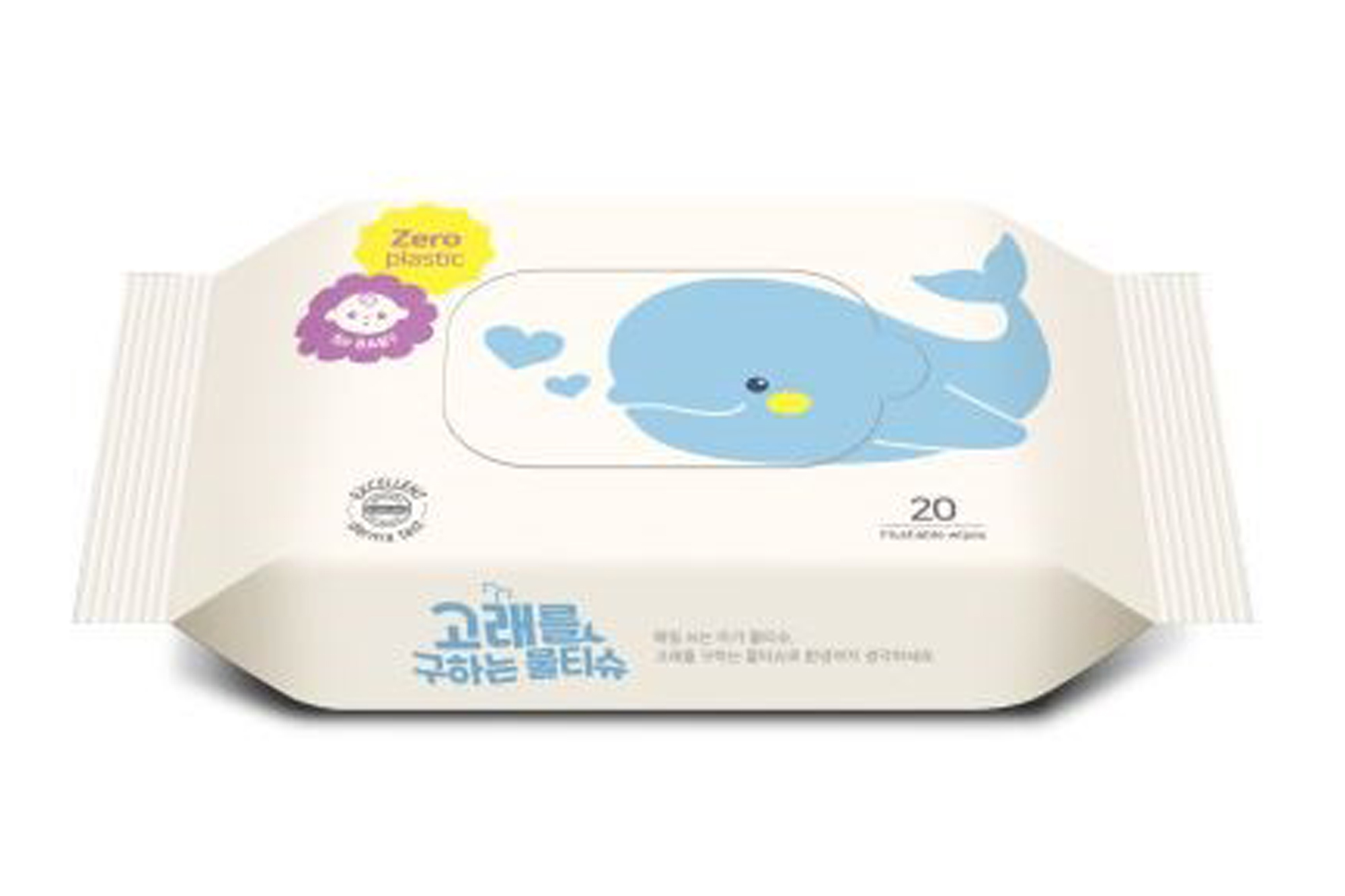 친환경 소비재 개발에도 속도를 내고 있습니다. 미세 플라스틱 걱정 없는 종이 물티슈 제품인 '고래를 구하는 물티슈'를 출시해 인기를 얻고 있습니다. 플라스틱 계열이 아니라 천연 펄프와 식물에서 유래한 레이온 원단을 혼합 사용해 고래들을 보호할 수 있는 친환경 제품입니다.