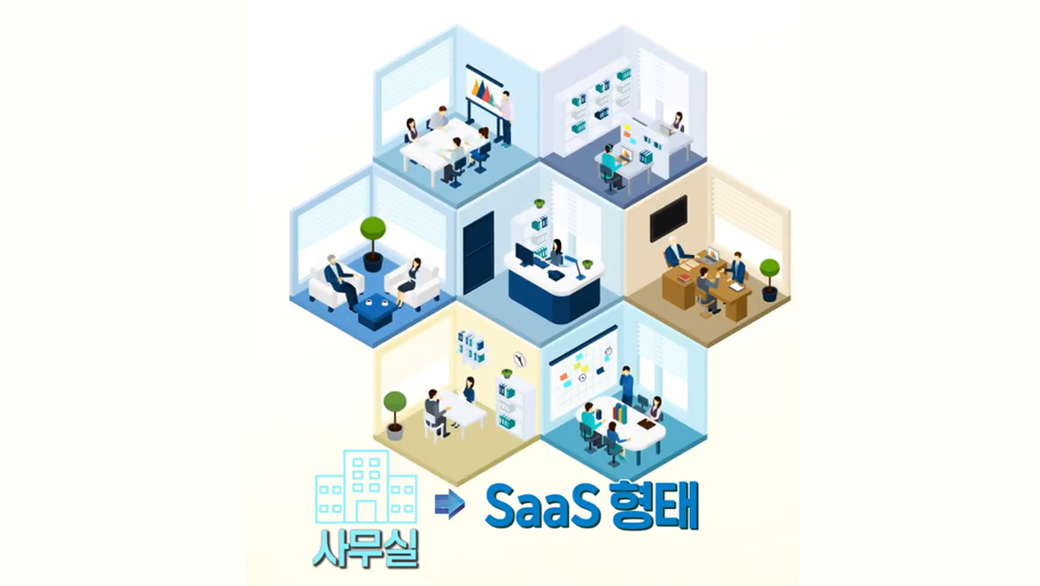 SaaS(Software-as-a-Service)는 클라우드 애플리케이션과 기본 IT 인프라 및 플랫폼을 인터넷 브라우저를 통해 최종 사용자에게 제공하는 클라우드 컴퓨팅 형태입니다. 요즘 많이 이용되는 공유 오피스와 유사합니다. 인테리어, 가구 등 사무실의 모든 것이 다 구성이 되어 있어 사용 기간이나 이용자 수 등만 협의하면 됩니다.