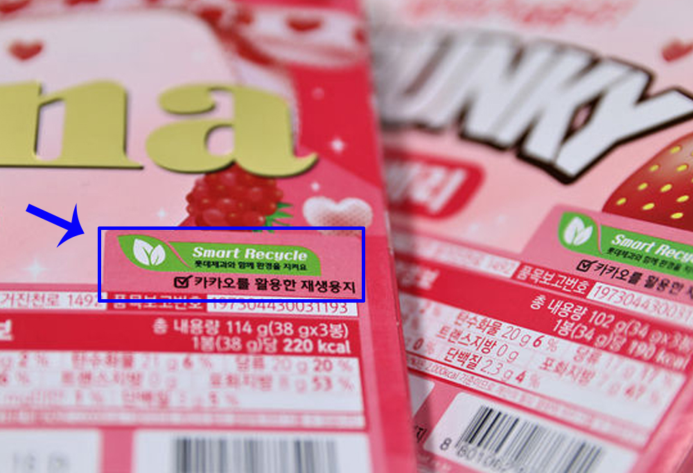 초콜릿 원료로 사용된 후 버려지는 카카오 열매의 부산물을 분말 형태로 가공한 후 재생펄프와 혼합해 만들었습니다. 카카오 원두를 그대로 들여와 가공하는 유일 업체 롯데제과와 자체 개발한 친환경 종이 포장재 기술을 보유한 한솔제지가 만나 차별화된 친환경 성과를 낸 것이라 그 의미가 큽니다.