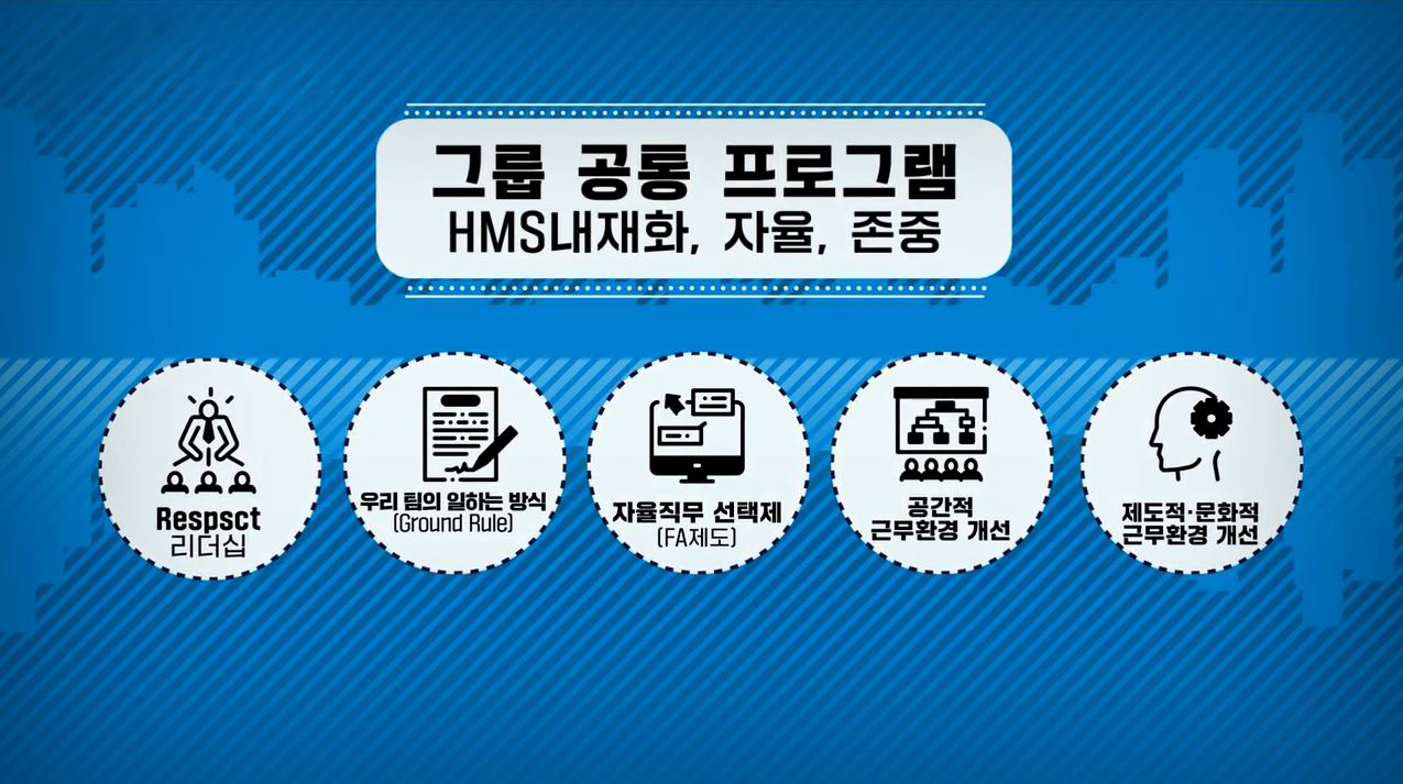 HMS는 한솔이 어떤 역할을 해야 하고 그것을 어떻게 해 나갈지에 대한 대 원칙으로 한솔인 모두가 함께 공감하고, 스스로 판단하고 행동할 수 있도록 방향을 제시해 주는 나침반이라고 할 수 있습니다. 우리는 HMS의 핵심 내용을 바탕으로 다양한 킬러 콘텐츠를 활성화시켜 국가와 산업을 이끌어 갈 최고의 인재를 육성해 갈 것입니다.