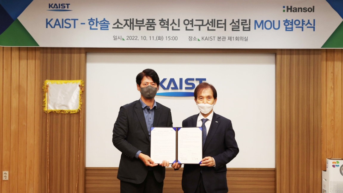 지난 11일 KAIST 본관에서 한솔홀딩스 이재희 대표와 이광형 KAIST 총장은 ‘KAIST-한솔 소재부품 혁신 연구센터'를 설립하고 연간 5억 원 규모의 소재부품 연구를 함께 진행하기로 협약을 체결했습니다.