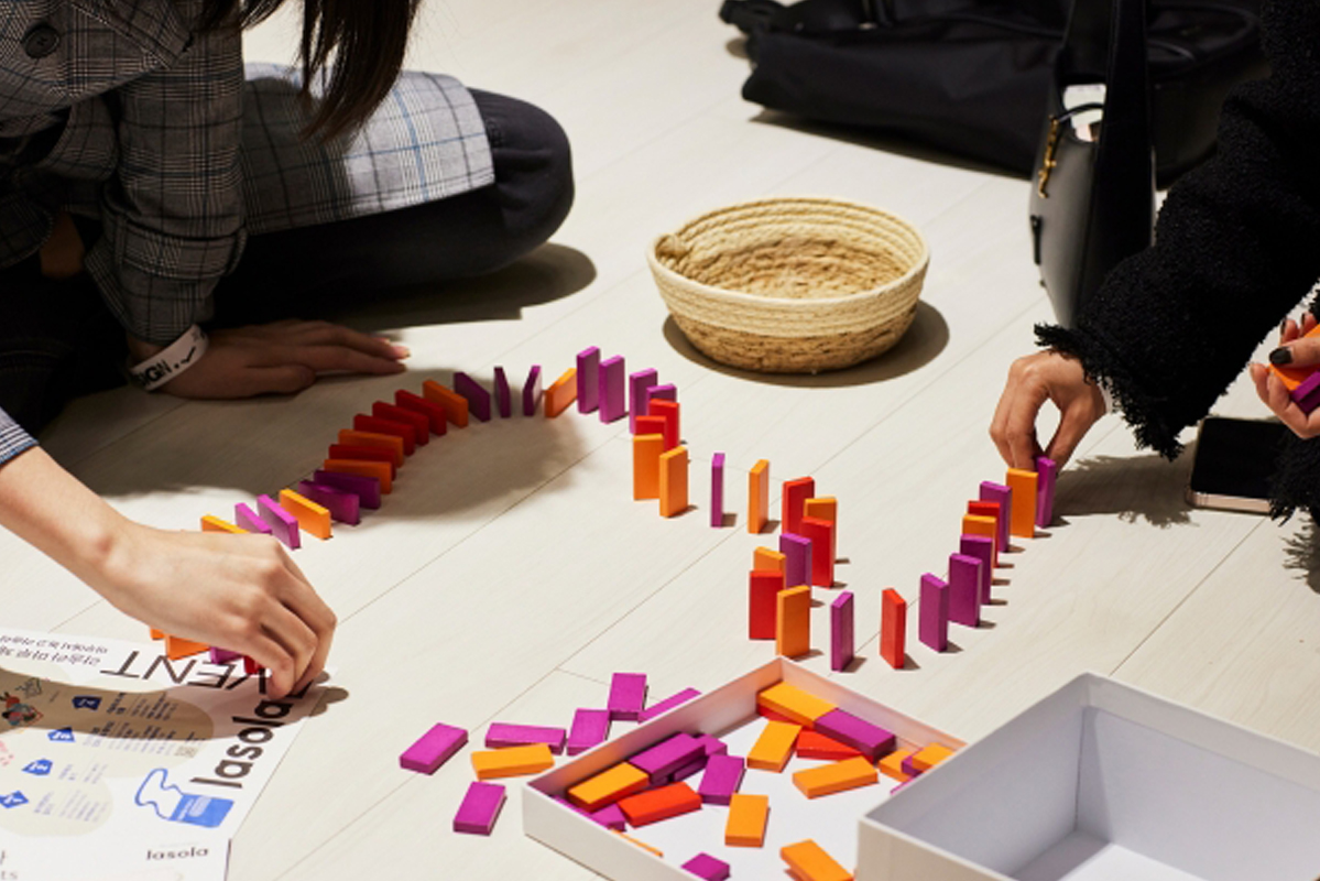 ‘다시 마루에서 놀자’라는 주제에 맞춰 시민들이 직접 윷놀이, 젠가, 종이딱지, 나무공기, 도미노, 우쿨렐레, 퍼즐 등 놀이 품목이 들어있는 랜덤박스를 골라 놀면서 라솔라 마루 컬렉션을 자연스럽게 체험해 보는 방식입니다.