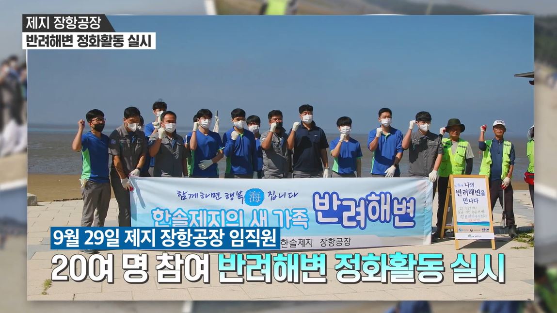 한솔제지 장암공장은 지난 9월 29일 임직원 20여 명이 참여한 가운데 송림 백사장 반려 해변 정화 활동을 실시했습니다. 반려 해변 정화 활동은 ESG경영을 적극 실천하고 지역사회봉사 프로그램 확대를 위해 진행하는 의미 있는 임직원 봉사 활동입니다.