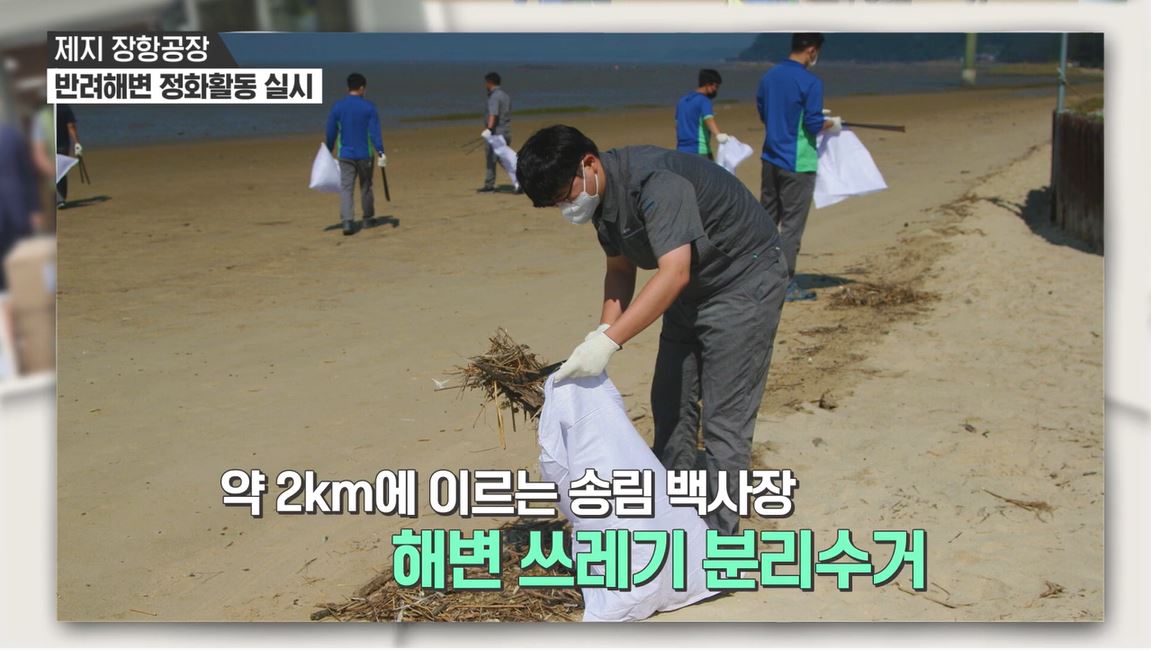 이날 임직원은 약 2Km에 이르는 송림 백사장 해변에서 해양 쓰레기와 재활용 가능 물품을 구분해 분리수거했습니다. 지난해 9월 ‘제21회 춘장대 국제 연안정화의 날’ 반려해변 입양식을 시작으로 6월에 이어 올해 두 번째로 진행한 행사입니다.