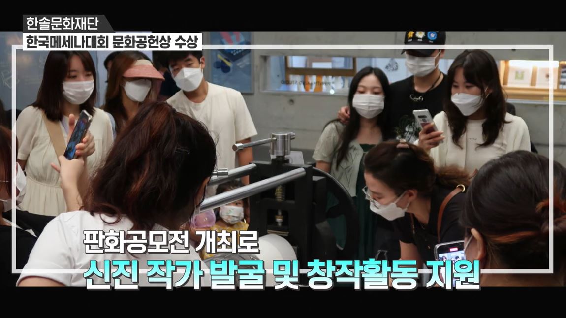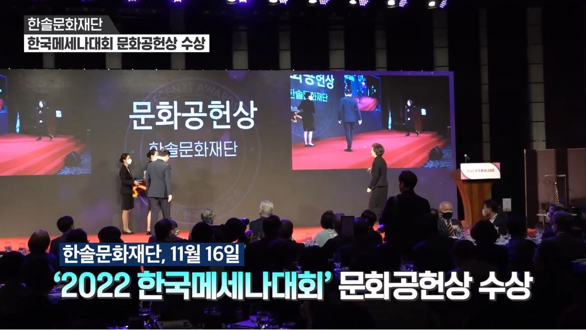 1999년 제정된 메세나 대상은 우리나라 예술 발전에 기여한 기업, 기업인을 발굴해 시상하는 국내 최고 권위의 시상제도로 한솔문화재단의 이번 수상은 문화 발전에 대한 한솔그룹의 공로를 인정받은 결과라고 하겠습니다.
