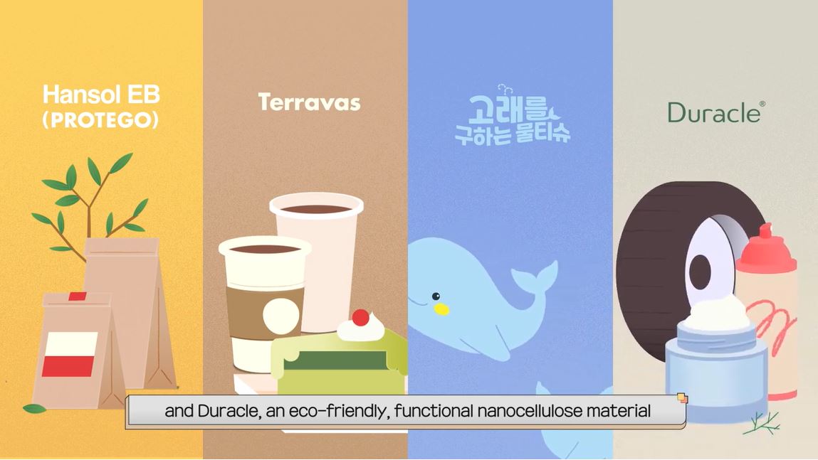 최근에는 종이의 한계를 뛰어넘는 용기 테라바스와 연포장재 프로테고를 상용화했으며 나무유래 나노셀룰로오스를 응용한 듀라클 등 자연친화적 소재 개발에도 앞장서고 있습니다. 글로벌 친환경 소재기업으로 발돋움하고 있는 한솔제지의 친환경 제품들을 소개합니다