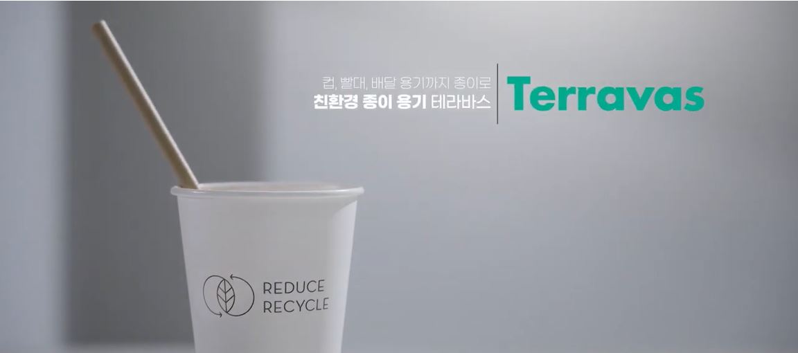 테라바스는 기존 플라스틱 계열의 PE(폴리에틸렌) 대신 한솔제지가 자체 개발한 수용성 코팅액을 적용한 친환경 종이 용기입니다. 종이 소재의 강점인 재활용성과 생분해성은 물론, 우수한 내수성과 전자레인지에 넣을 수 있는 내열성까지 갖춰 배달 용기, 컵, 빨대 등 적용처를 빠르게 확대하고 있습니다. 오뚜기 식품, 밀키트 전문업체 마이셰프, 커피전문점 이디야, 폴 바셋 등에서 사용하고 있습니다.