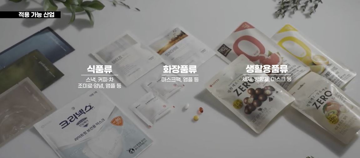 또한, 생분해가 가능해 종이류 분리배출을 통해 재활용할 수 있으며 FSC(국제산림관리협회) 인증 펄프를 사용, 고품질의 친환경성을 갖추고 있습니다. 현재 마스크팩, 롯데 젤리 등의 포장재로 쓰이고 있습니다.