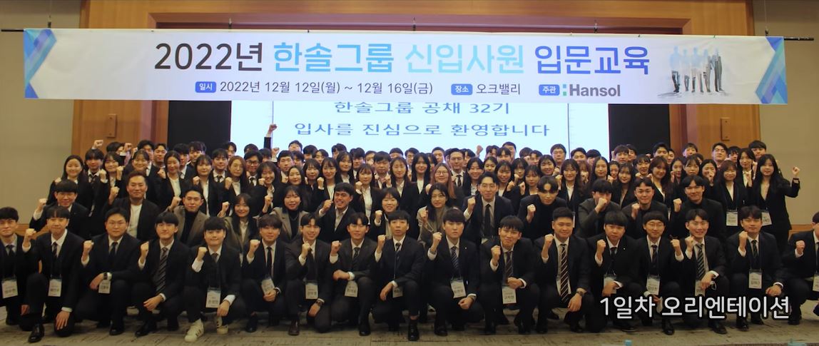 한솔그룹 2022년 공채 32기 신입사원 입문교육이 지난 12월 12일부터 16일까지 5일간 강원도 원주시에 위치한 오크밸리에서 실시되었습니다.