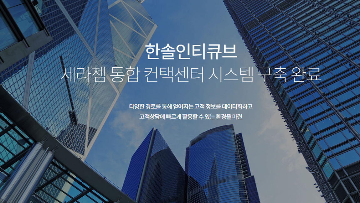 한솔인티큐브는 인천공항, 신한금융투자 등에 이어 지난해 말 세라젬의 컨택센터 구축을 성공적으로 완료했습니다. 상담사 대신 시스템이 자동으로 고객에게 전화를 걸고 연결해 주는 PDS솔루션으로 업무생산성 향상, 상담사 만족도 제고, 불완전판매율 감소 및 TM업무 품질 업그레이드를 함께 기대할 수 있게 되었습니다.