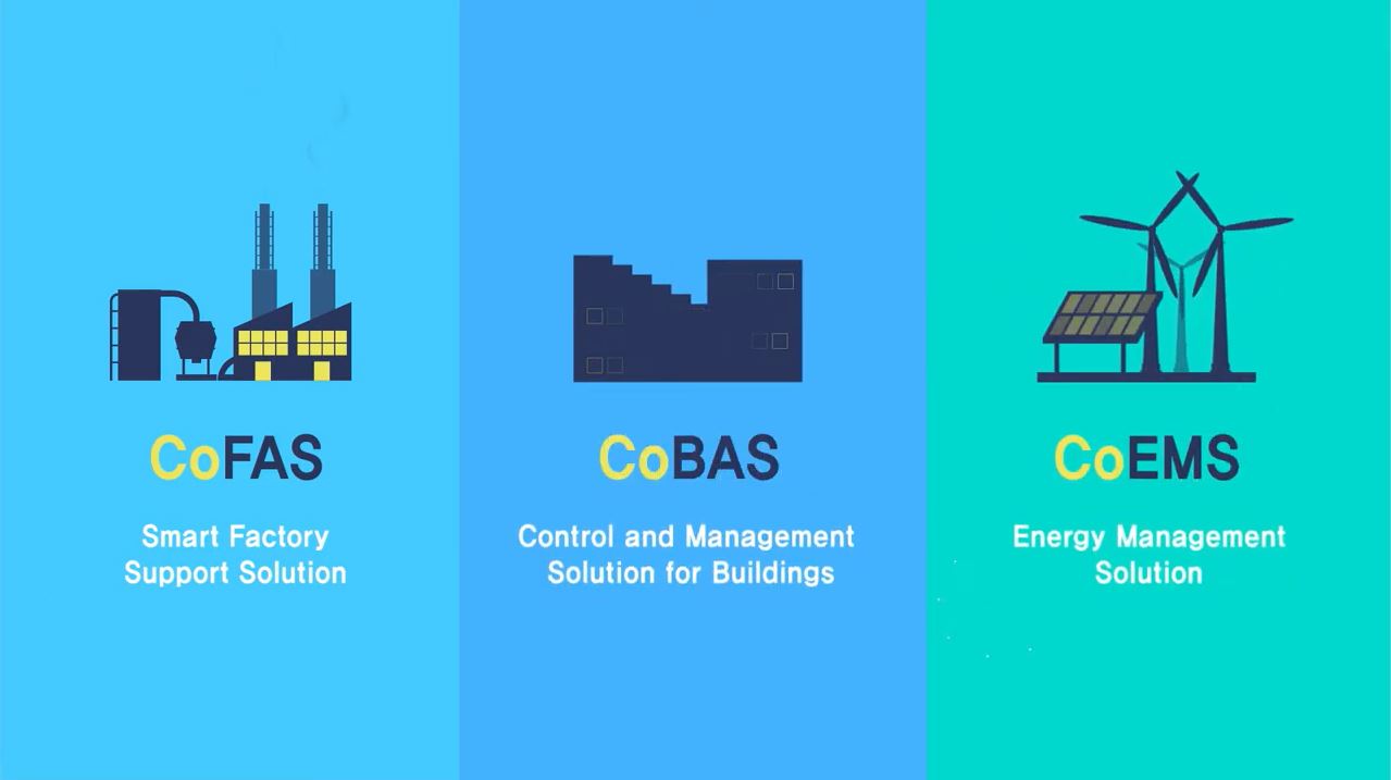 4차 산업혁명시대를 맞이하여 사물인터넷(IoT), 머신러닝, Vision, 3DViewer등의 기술을 활용하여 스마트공장을 지원하는 솔루션인 CoFAS와 전기, 설비, 통신분야 면허를 활용한 빌딩용 제어∙관리 솔루션인 CoBAS, 그리고 FEMS(Factory Energy Management System)기능을 포함하는 에너지관리솔루션인 CoEMS 시스템을 고객에게 제공하고 있습니다.