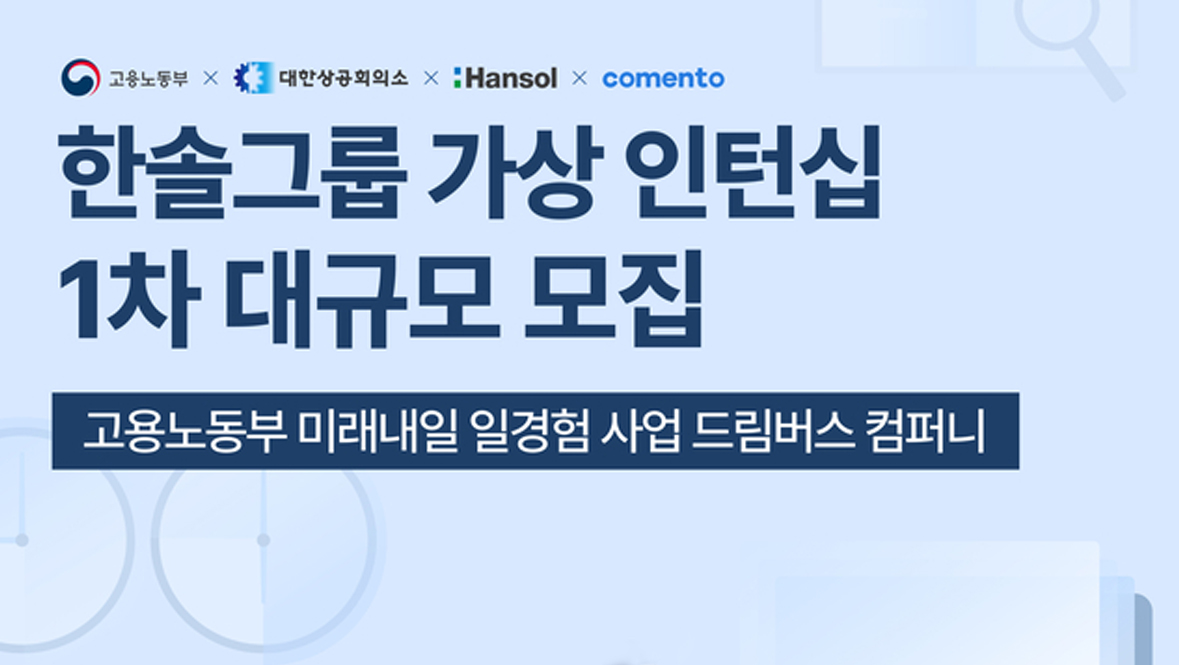 한솔 드림버스 컴퍼니는 고용노동부가 추진하는 미래내일 일경험 사업 지원을 받아 본 사업의 운영기관인 코멘토와 함께 진행하는 사업입니다. 일경험 프로그램은 참여자의 직무역량과 취업 의욕을 높이기 위해 실제 기업에서의 다양한 직무 경험을 제공하고자 마련된 취업지원 프로그램입니다.