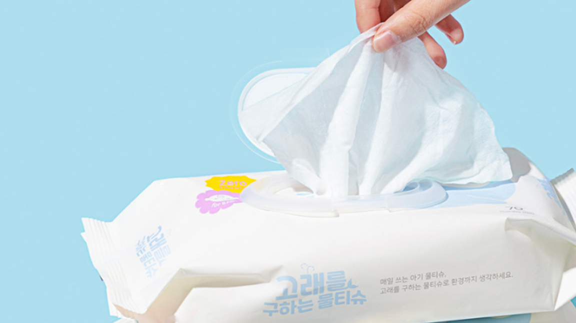 한솔제지가 지난해 출시한 '고래를 구하는 물티슈'는 기존 플라스틱 소재 원단 대신 천연 펄프 기반의 원단을 사용해 미세 플라스틱이 발생하지 않으며 국제 물풀림 기준(INDA ADANA)을 통과해 사용 후 변기에 버릴 수 있는 편의성과 생분해가 가능한 점 등에서 소비자 평가단의 높은 평가를 받았습니다.