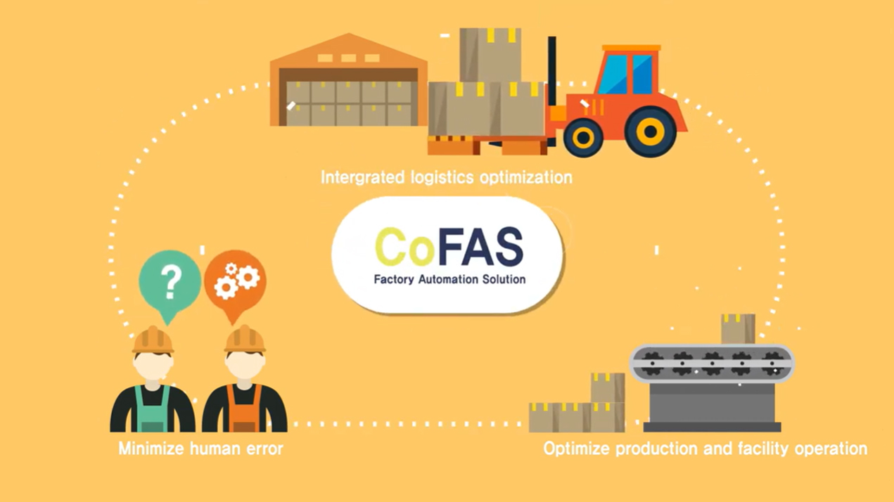 특히 코파스(CoFAS)는 실제 생산을 수행하기 위한 공급망 분석 및 제어를 위한 시스템으로서 생산계획에 기초한 계획 정보를 생산 현장에 제공할 뿐만 아니라 성능 정보, 운영 정보, 품질 정보, 품질 정보, 작업자 정보 생성 및 관리를 통해 효율적인 프로덕션 및 장비 관리를 지원합니다.